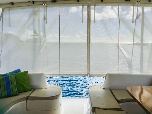 •  Textalene drop-down aft shade curtains