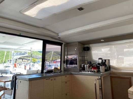Produced with large spaces, a 129.39 square feet cockpit, and a 32.3 square feet lounge space. Unique to catamarans in this size she features walk-around berths and a separate head closet in the owners en-suite.