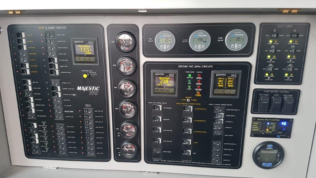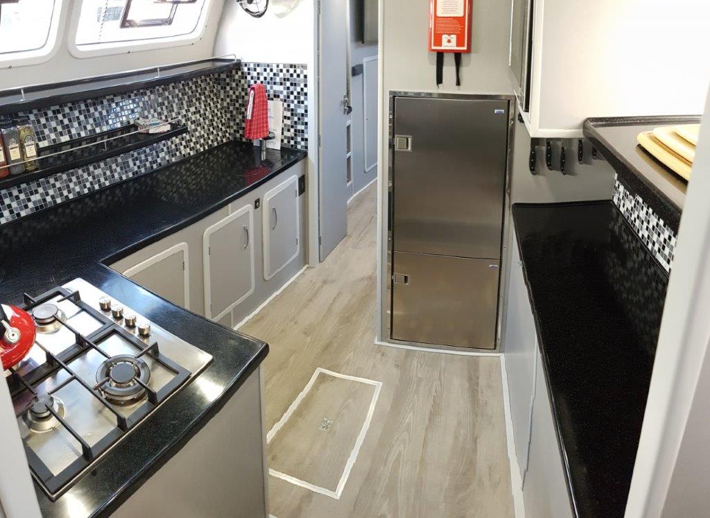 OOGA CHAKA is a 5-cabin 4-head Catamaran powered with twin Yanmar 4JH-110 Turbo engines known for excellent maneuvering, with bow thruster for added confidence in close quarters.
