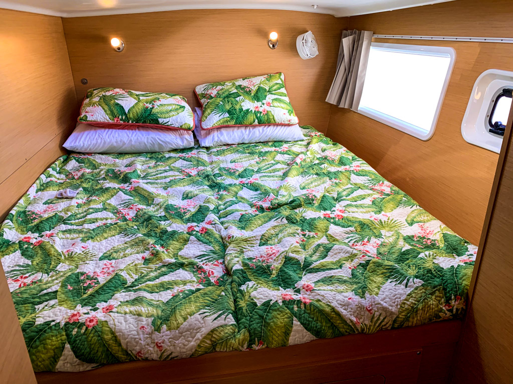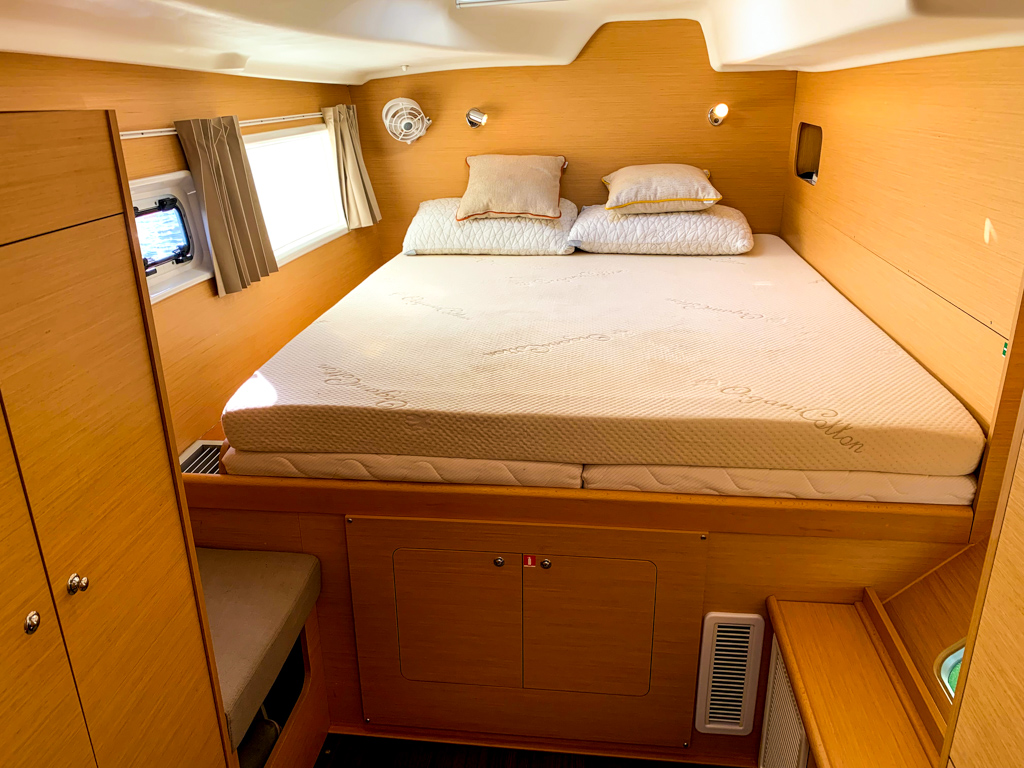 - There is a brand new 100% Natural Latex mattress pad, 4″ thick – custom fit to the owner’s cabin w/ organic cotton cover