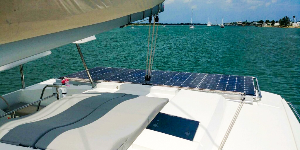 - 4x LG 350 1.4kw solar panels with Victron Energy MPPT controller on stainless steel rack