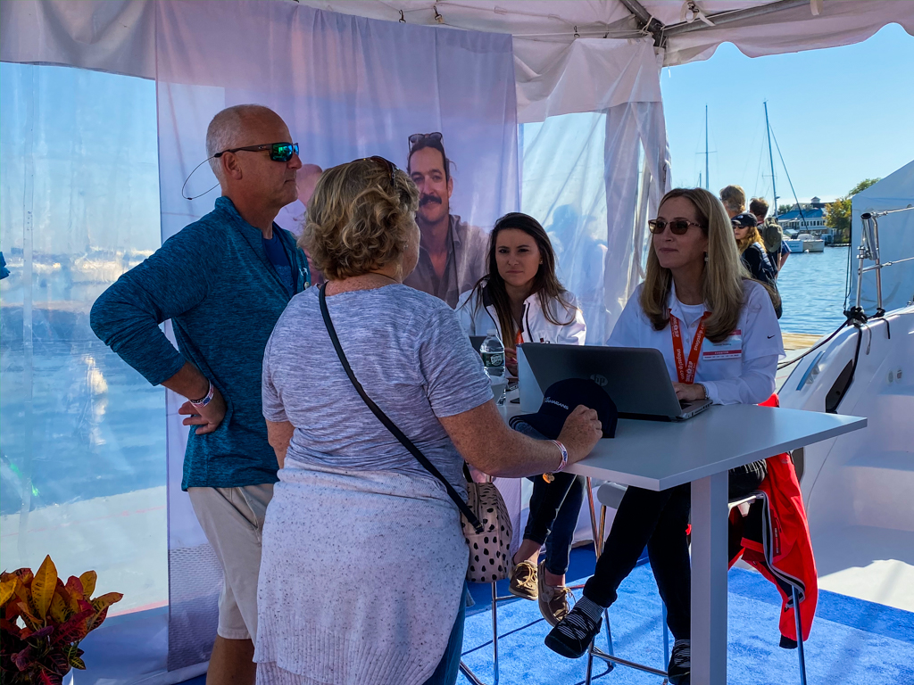 The Just Catamarans team of Derek Escher, Jim Ross, Kent Grimbeek, Robert Taylor, Terry GrimbeekStuart Eichner and Thomas Chambers attended the show to help Outremer clients who traveled from all over the world. Regarding the week that was, Vice President of Sales Thomas Chambers said: “Each year, the Annapolis show surpasses expectations. This year was no exception and we look foward to 2020 to make new memories. We are especially grateful for the relationship we have with Elayna, Riley, and Lenny.”