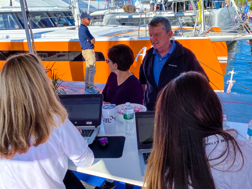 The Just Catamarans team of Derek Escher, Jim Ross, Kent Grimbeek, Robert Taylor, Terry Grimbeek, Stuart Eichner and Thomas Chambers attended the show to help Outremer clients who traveled from all over the world. Regarding the week that was, Vice President of Sales Thomas Chambers said: “Each year, the Annapolis show surpasses expectations. This year was no exception and we look foward to 2020 to make new memories. We are especially grateful for the relationship we have with Elayna, Riley, and Lenny.”