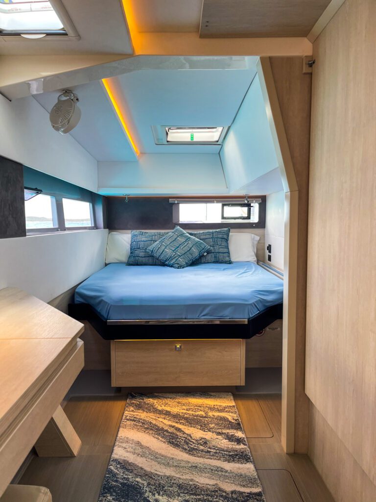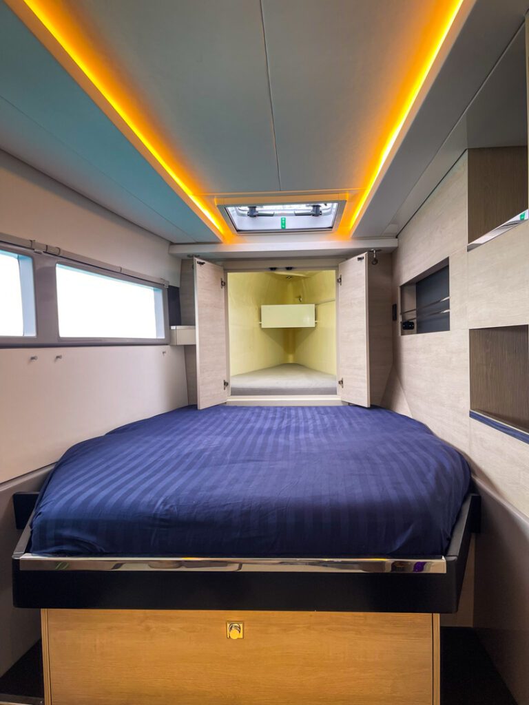 If you’re looking for a Leopard 45 that’s been upgraded for comfortable cruising and serious self-sufficiency, this one stands out. US duty paid and thoughtfully equipped, she features a 3-cabin/3-head layout plus the popular roof top lounge, extensive teak throughout key outdoor areas, robust solar and lithium capacity, modern Victron management, Starlink connectivity, and a well-rounded suite of Raymarine electronics including Axiom, AIS, autopilot, and Quantum 2 radar.