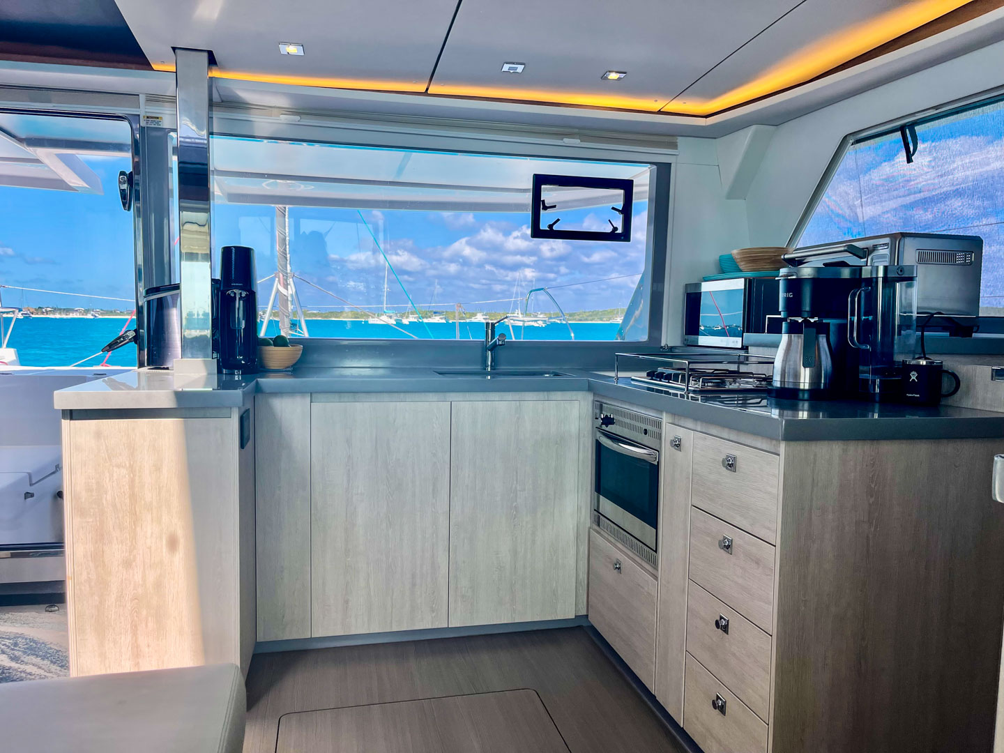 Cruising and liveaboard comfort is enhanced with full cockpit enclosure, upgraded salon functionality, washer/dryer, multiple TVs, interior blinds, red night lighting, and custom mattresses. For the adventure-minded, you’ll also find a full dive setup including a Bauer compressor and dedicated bottle storage. Add in upgraded ground tackle, watermaker, genset, and multiple sailing performance upgrades, and you have a Leopard 45 set up and ready to go.