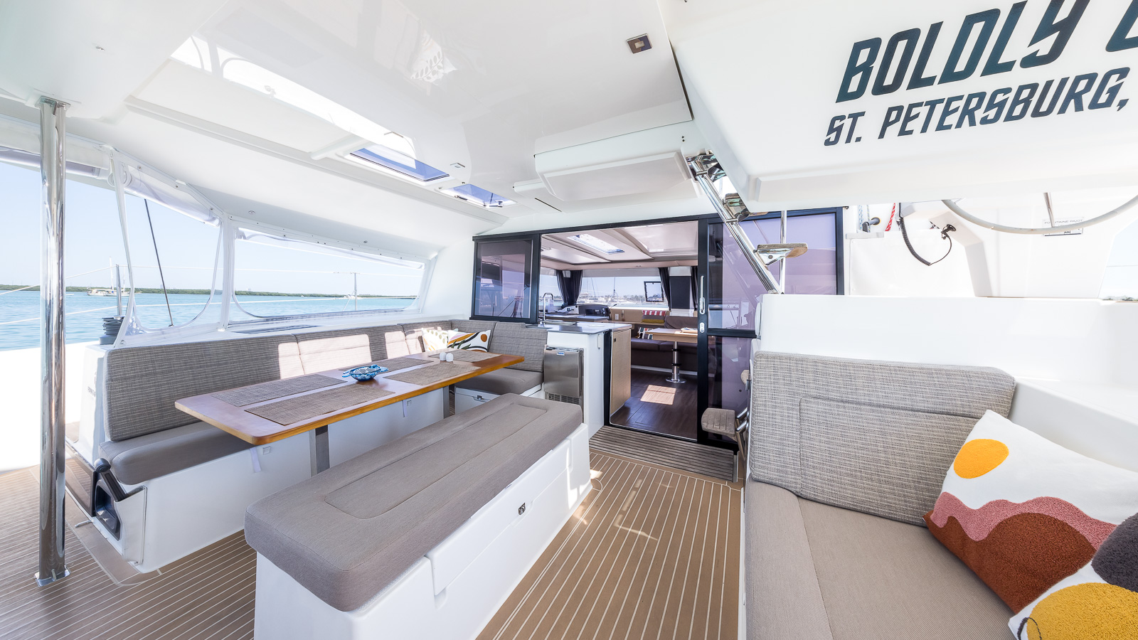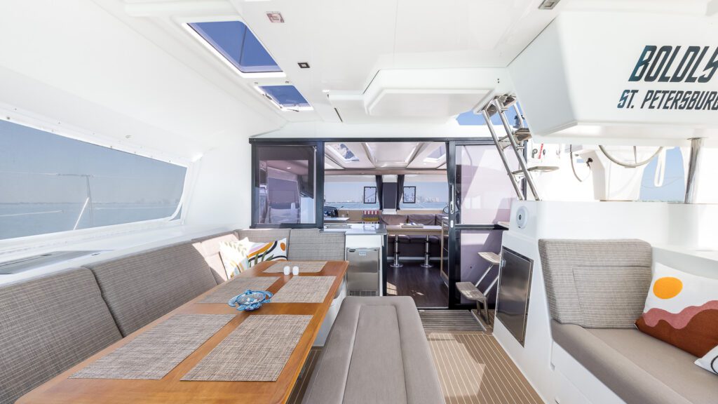 Boldly Go is imported and stands out with a long list of upgrades, mostly completed by Just Catamarans Service in Fort Lauderdale. Notable features include: