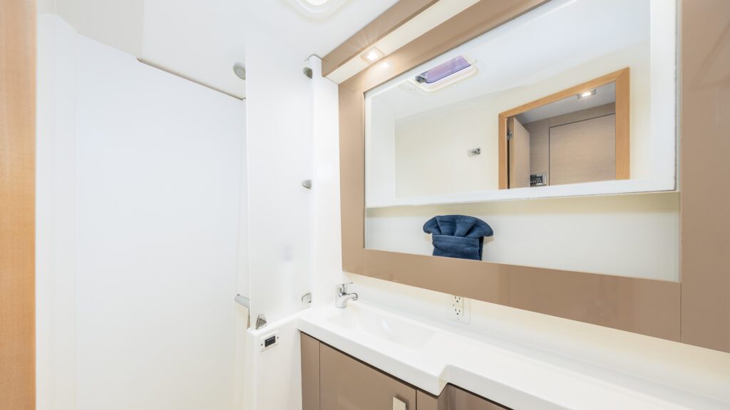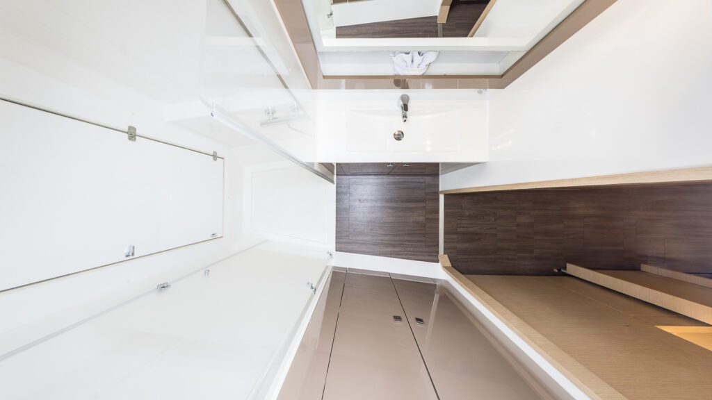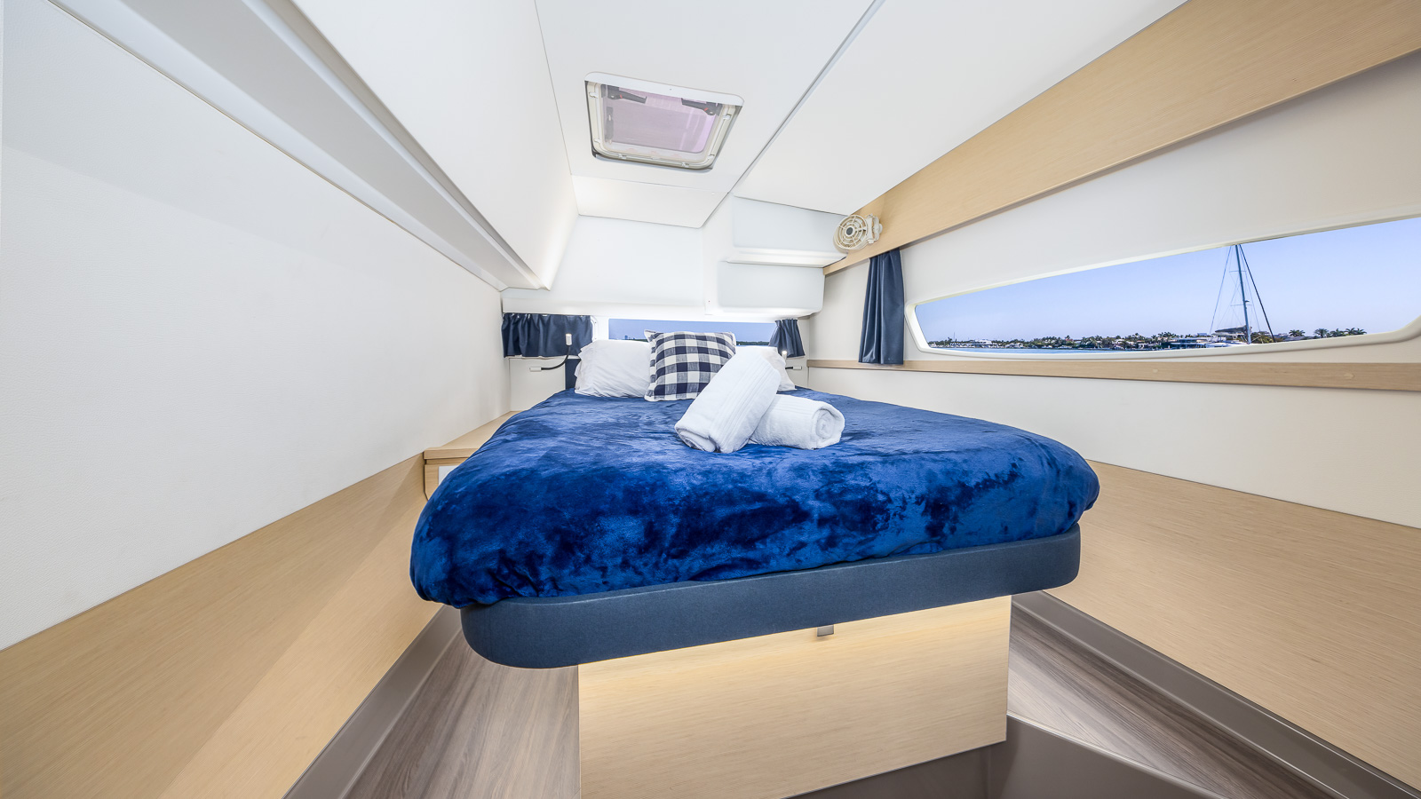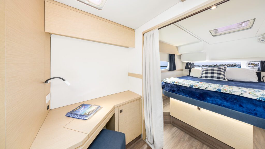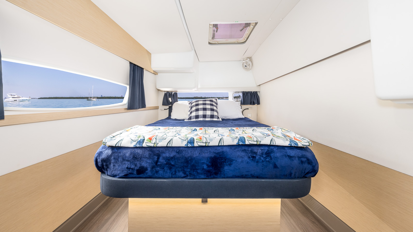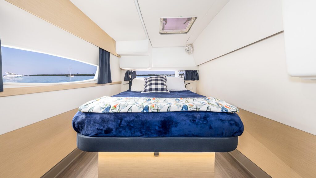 In the sought-after Maestro layout, the entire starboard hull is dedicated to a spacious owner’s suite, delivering exceptional comfort and privacy for extended passages.