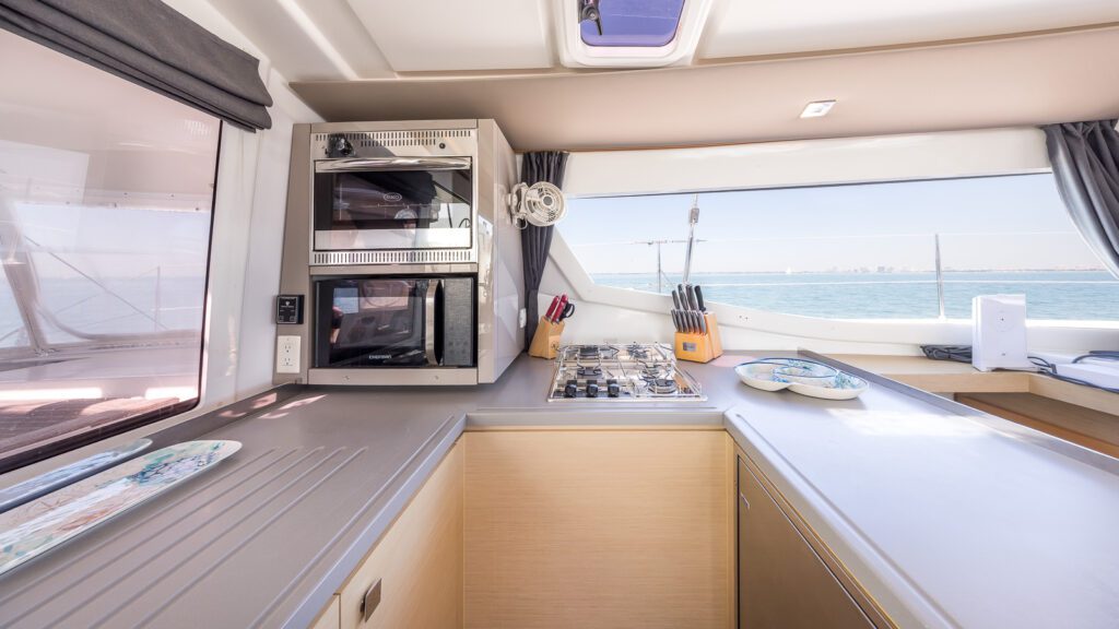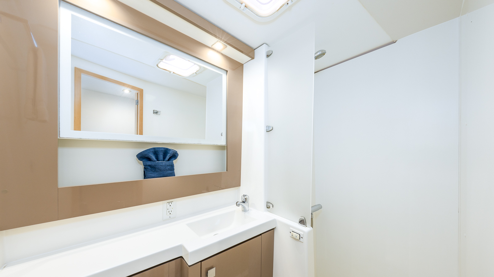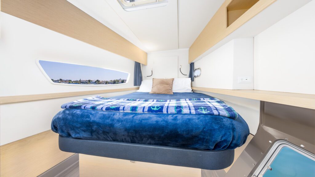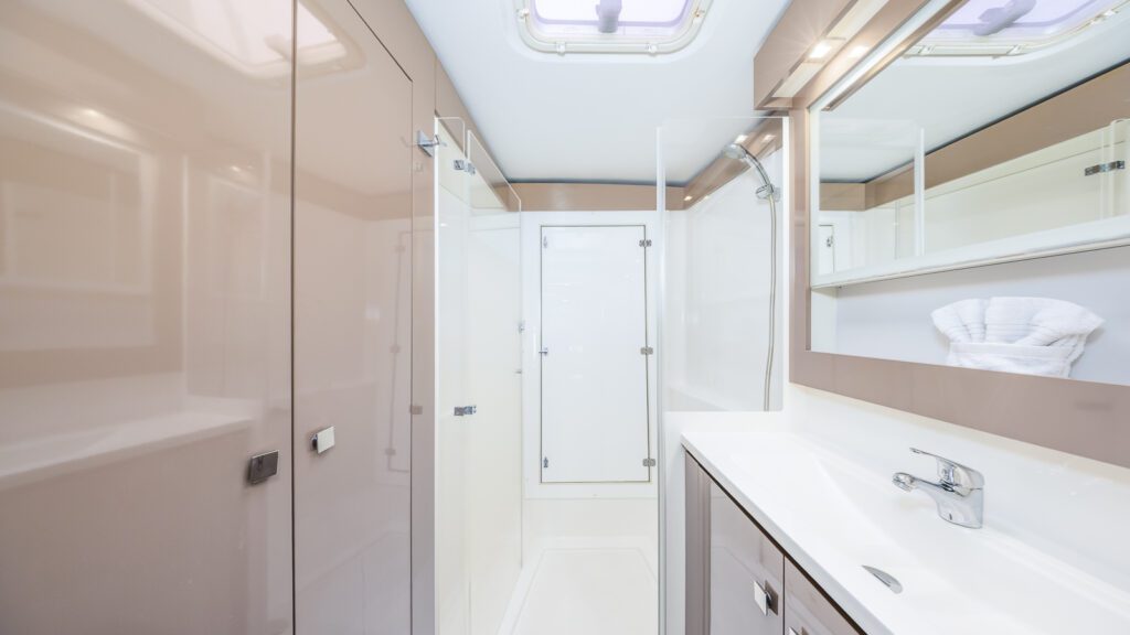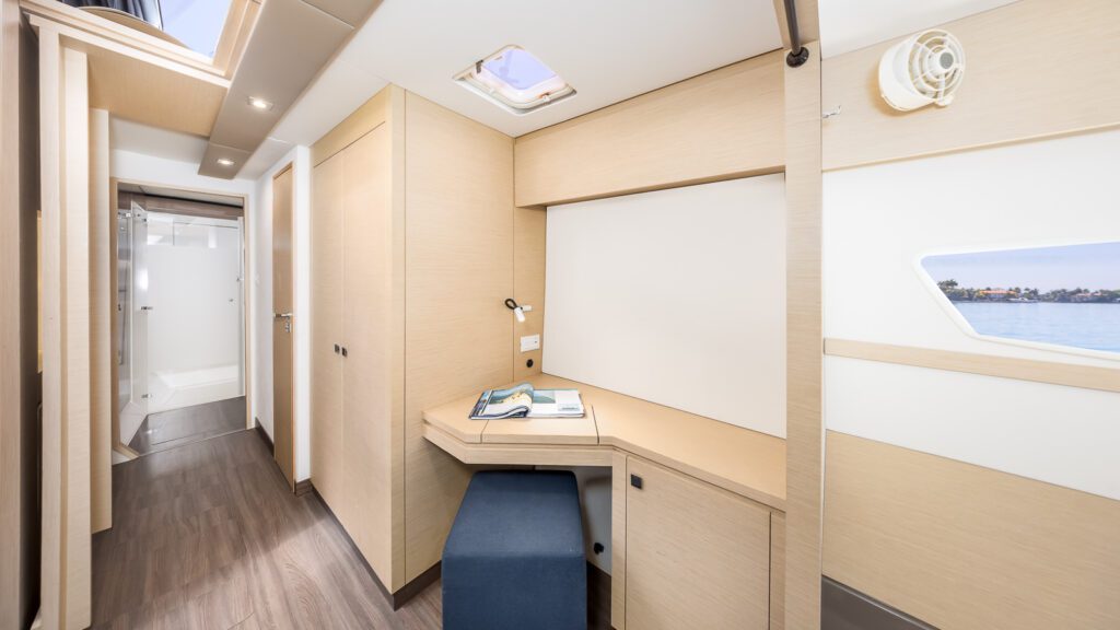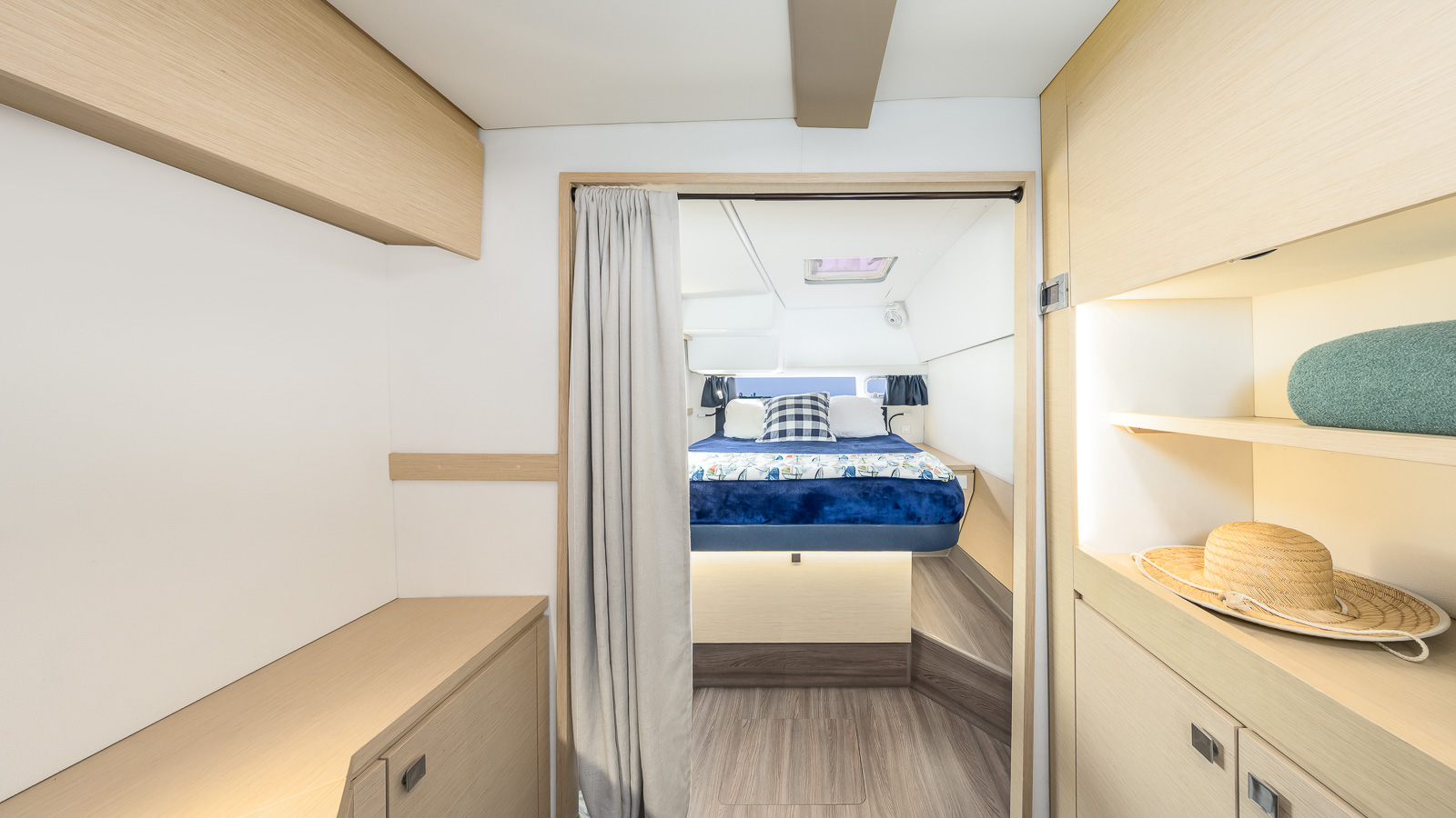 In the sought-after Maestro layout, the entire starboard hull is dedicated to a spacious owner’s suite, delivering exceptional comfort and privacy for extended passages.