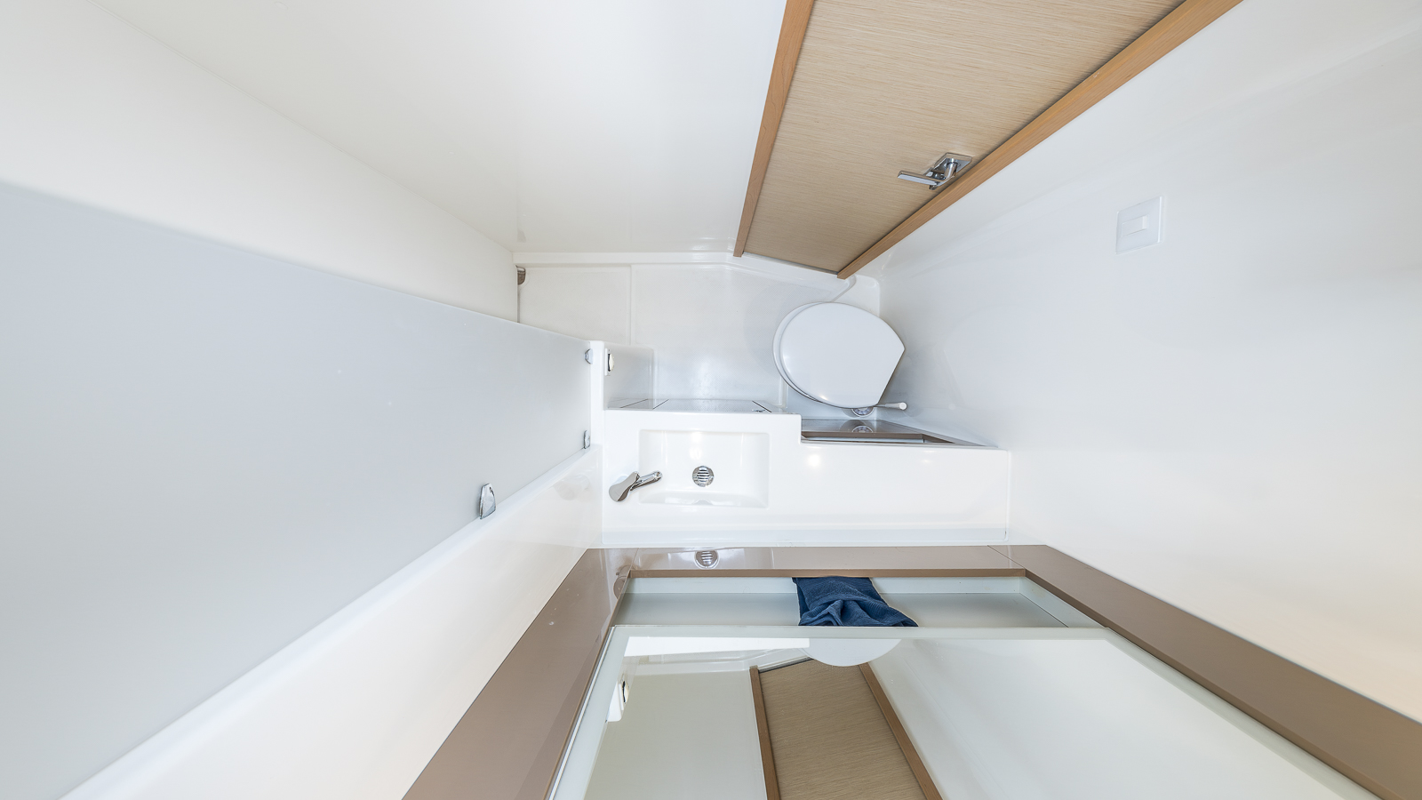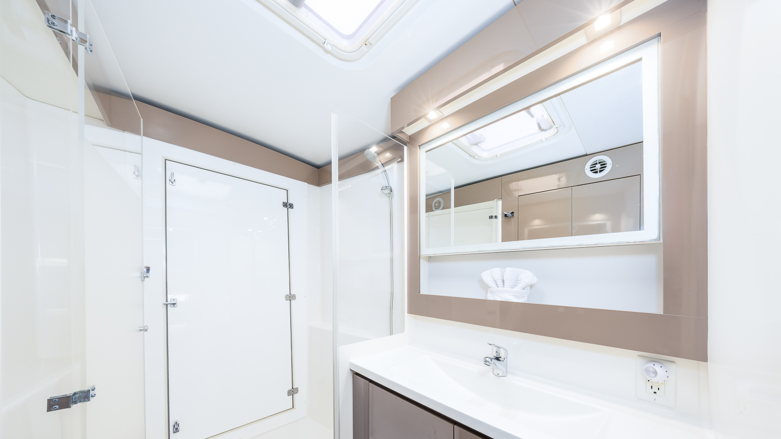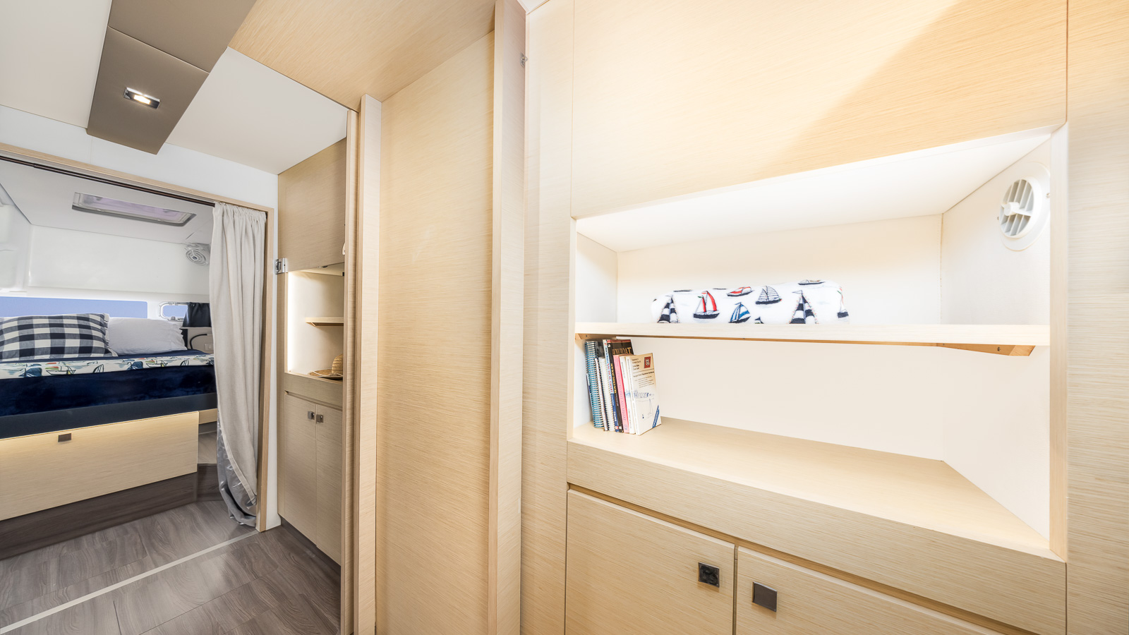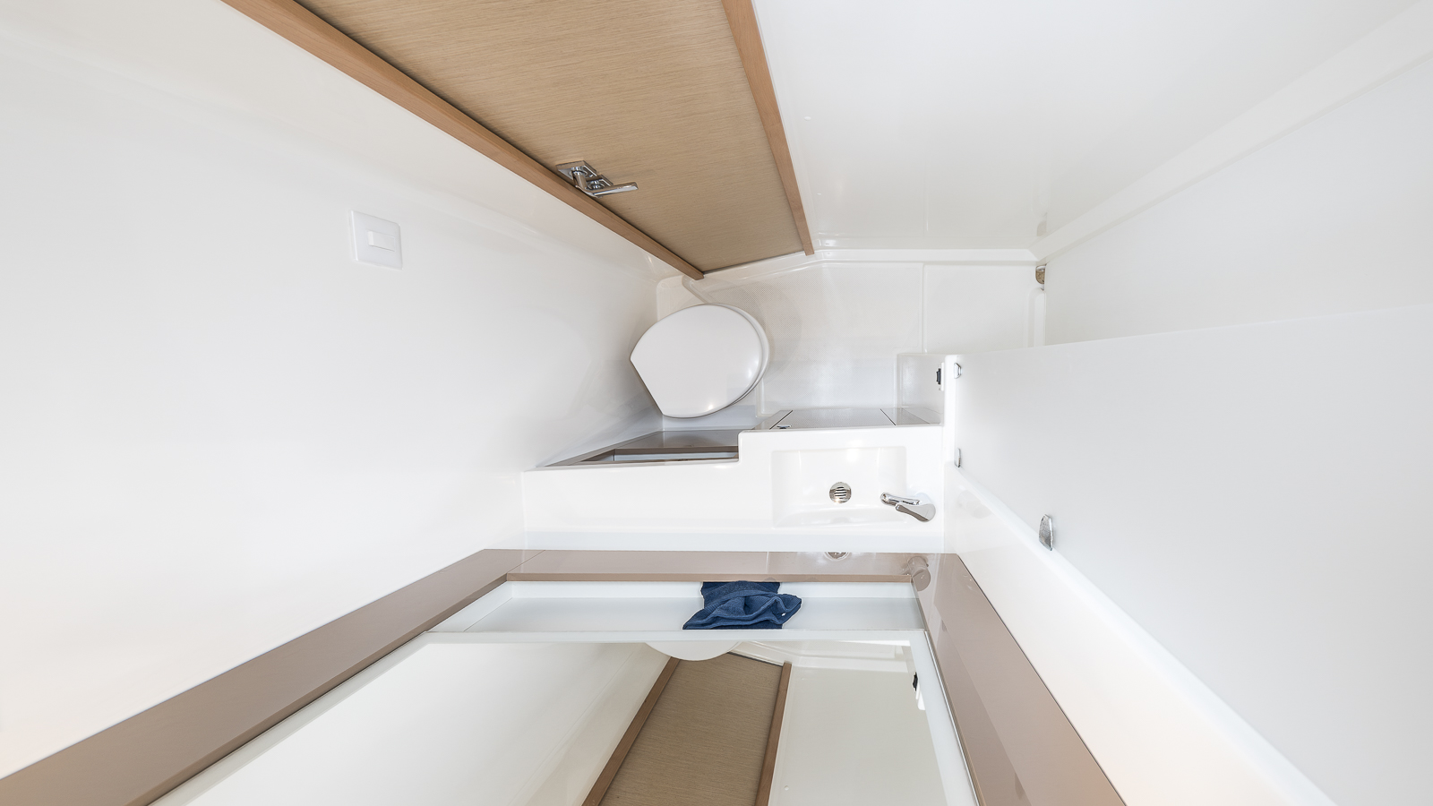 In the sought-after Maestro layout, the entire starboard hull is dedicated to a spacious owner’s suite, delivering exceptional comfort and privacy for extended passages.
