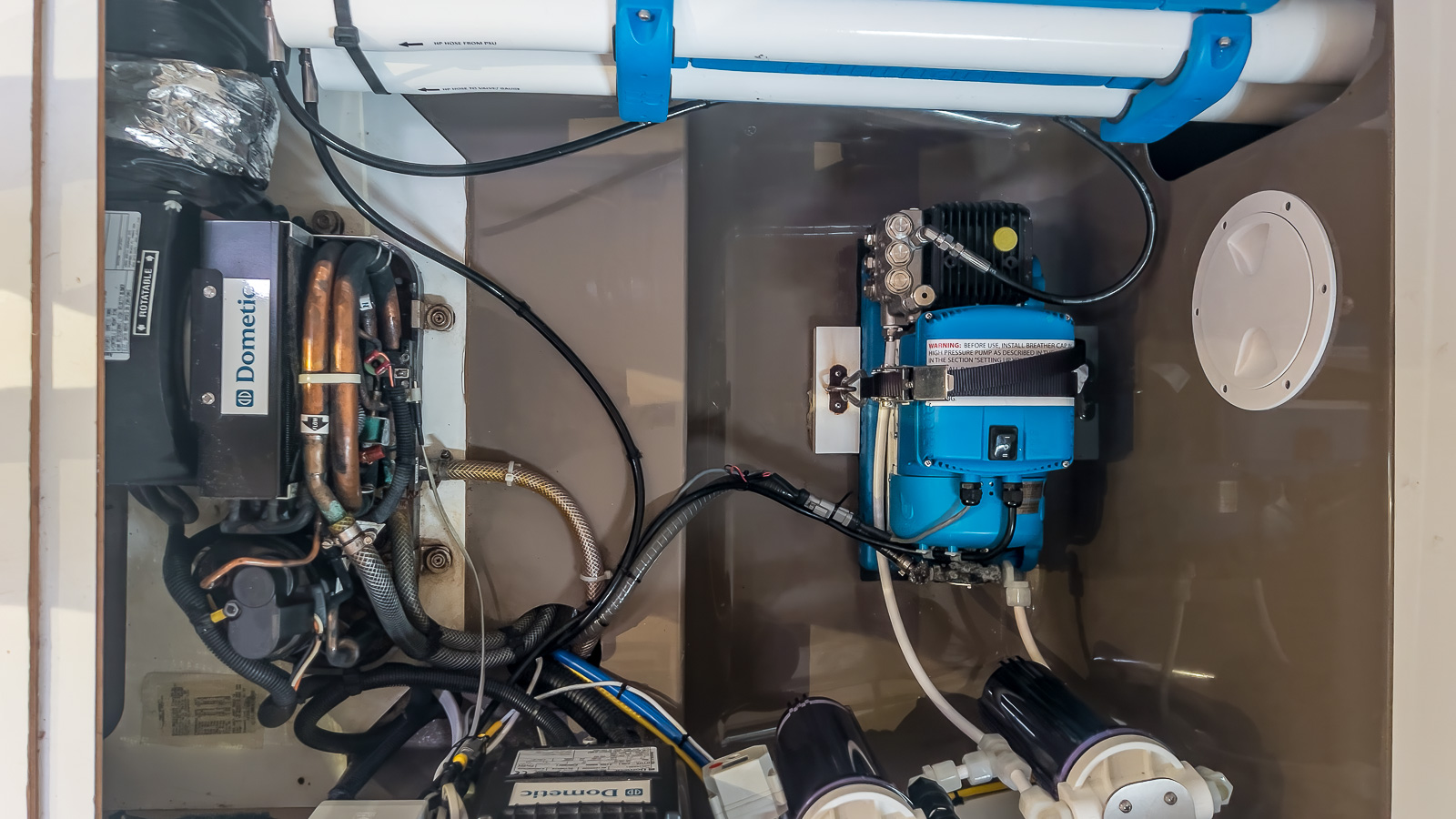 • 5 x Dometic A/C units throughout and 1 x Mabru 7,000 BTU 12 V DC / 115 V AC A/C unit in the master stateroom (new 2024)