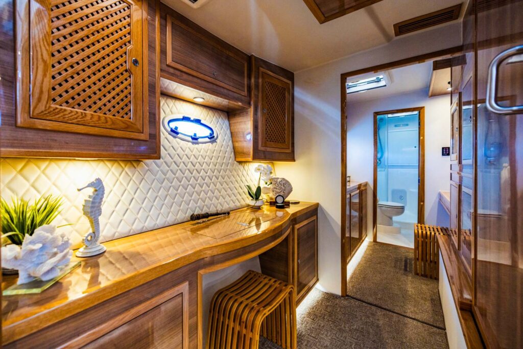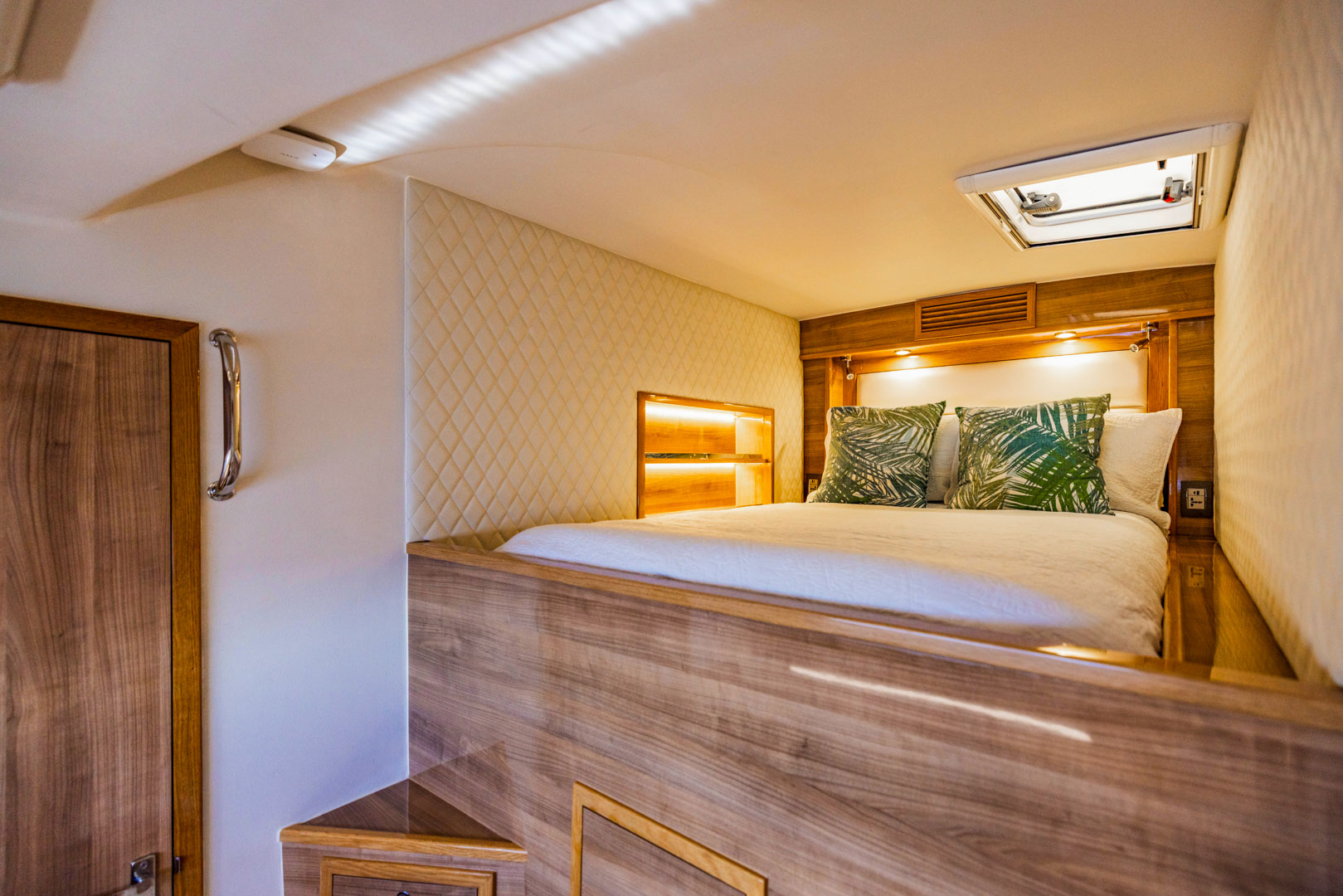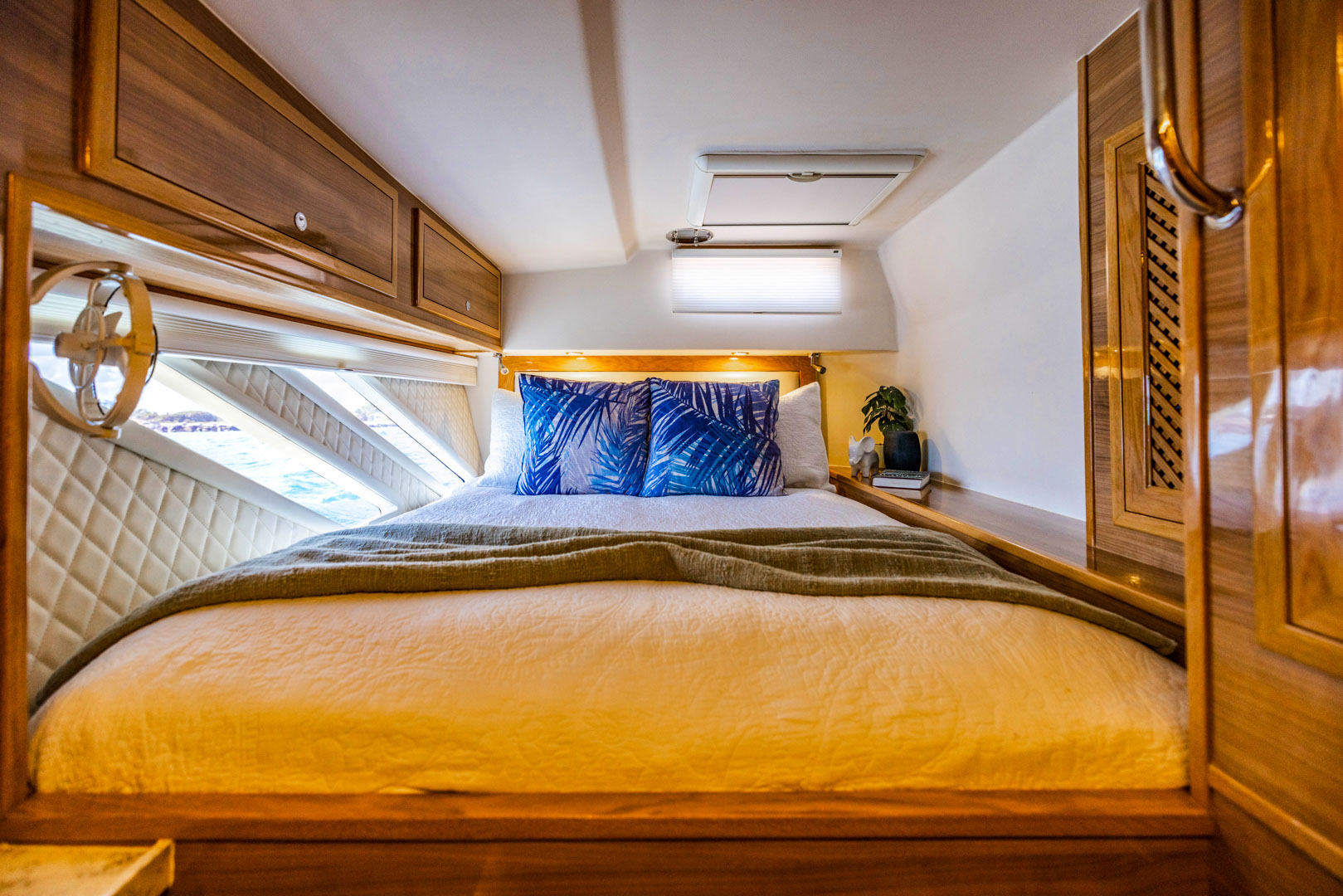 - Latex antimicrobial/mildew resistant mattress topper in the Owner’s cabin