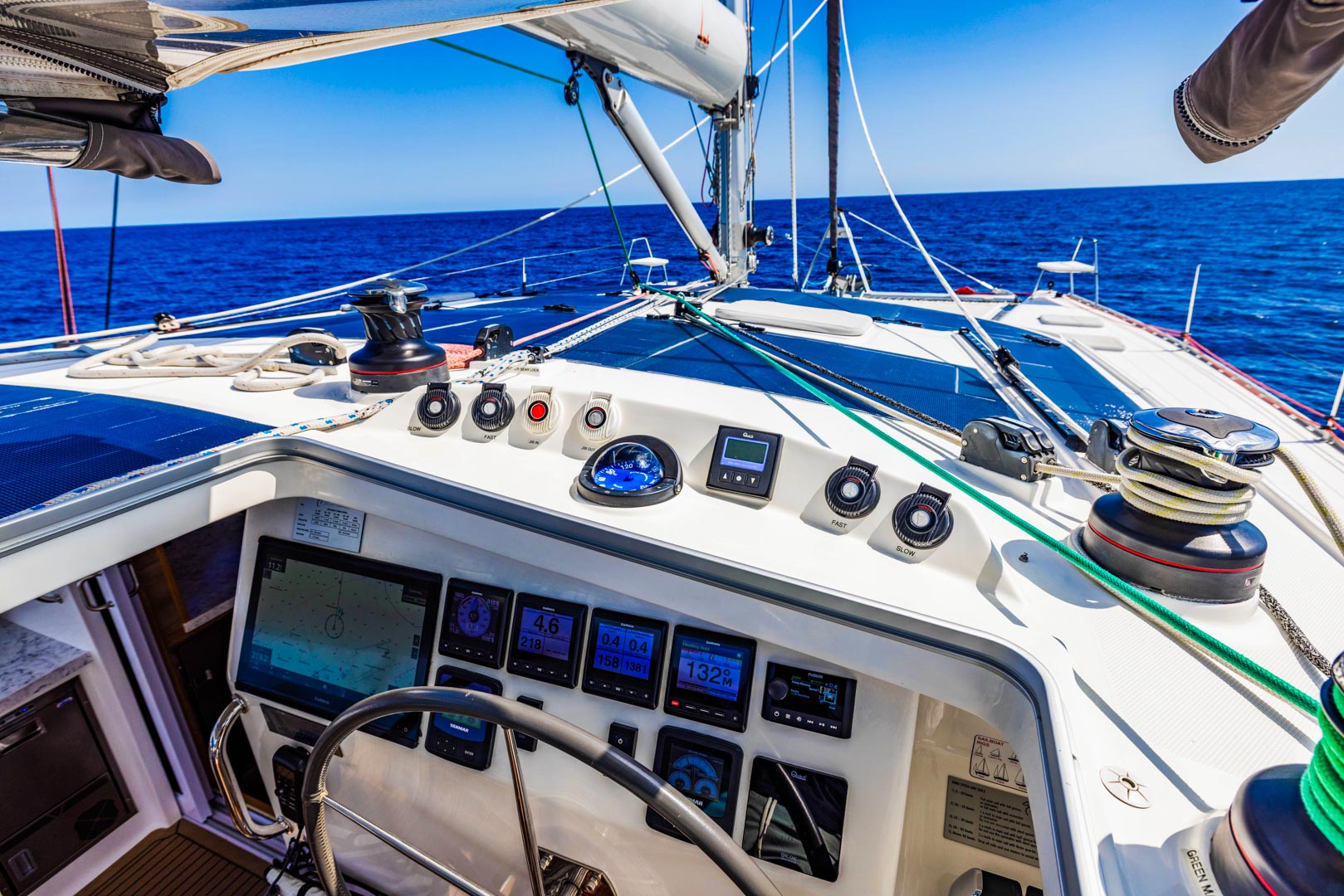 While her sailing resume and Knysna Yacht Company’s pedigree clearly establish her bluewater credibility, her systems and equipment reinforce it. A substantial 24V lithium battery bank, expansive solar array, complete sail inventory, and premium deck hardware and construction, reflect a luxury catamaran equipped to sail safely and comfortably anywhere in the world, with confidence.