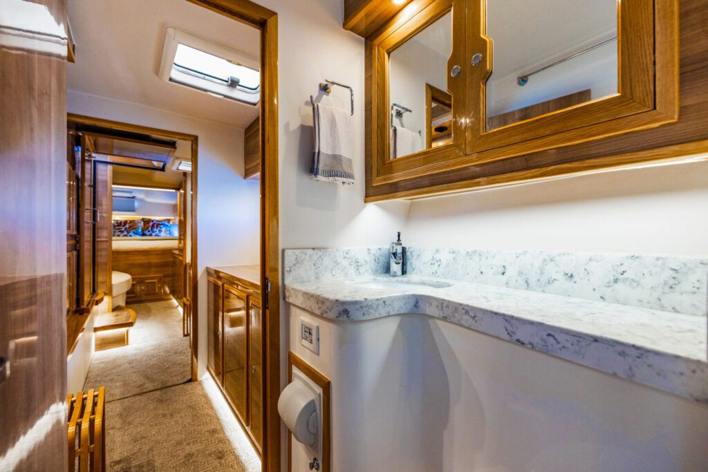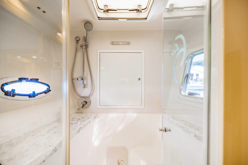- Air conditioning/heating throughout (28,000 BTU total across 3 units) w/remote and LCD control units in each cabin + salon