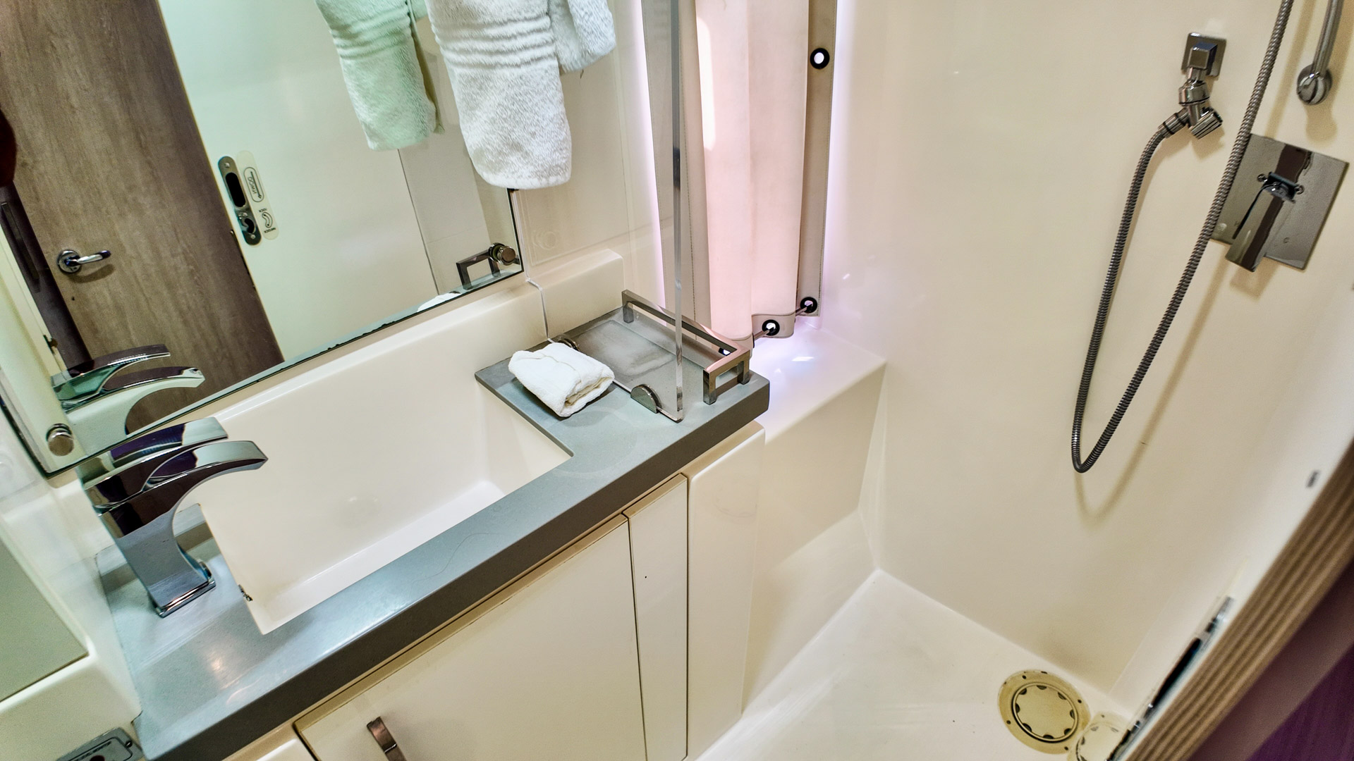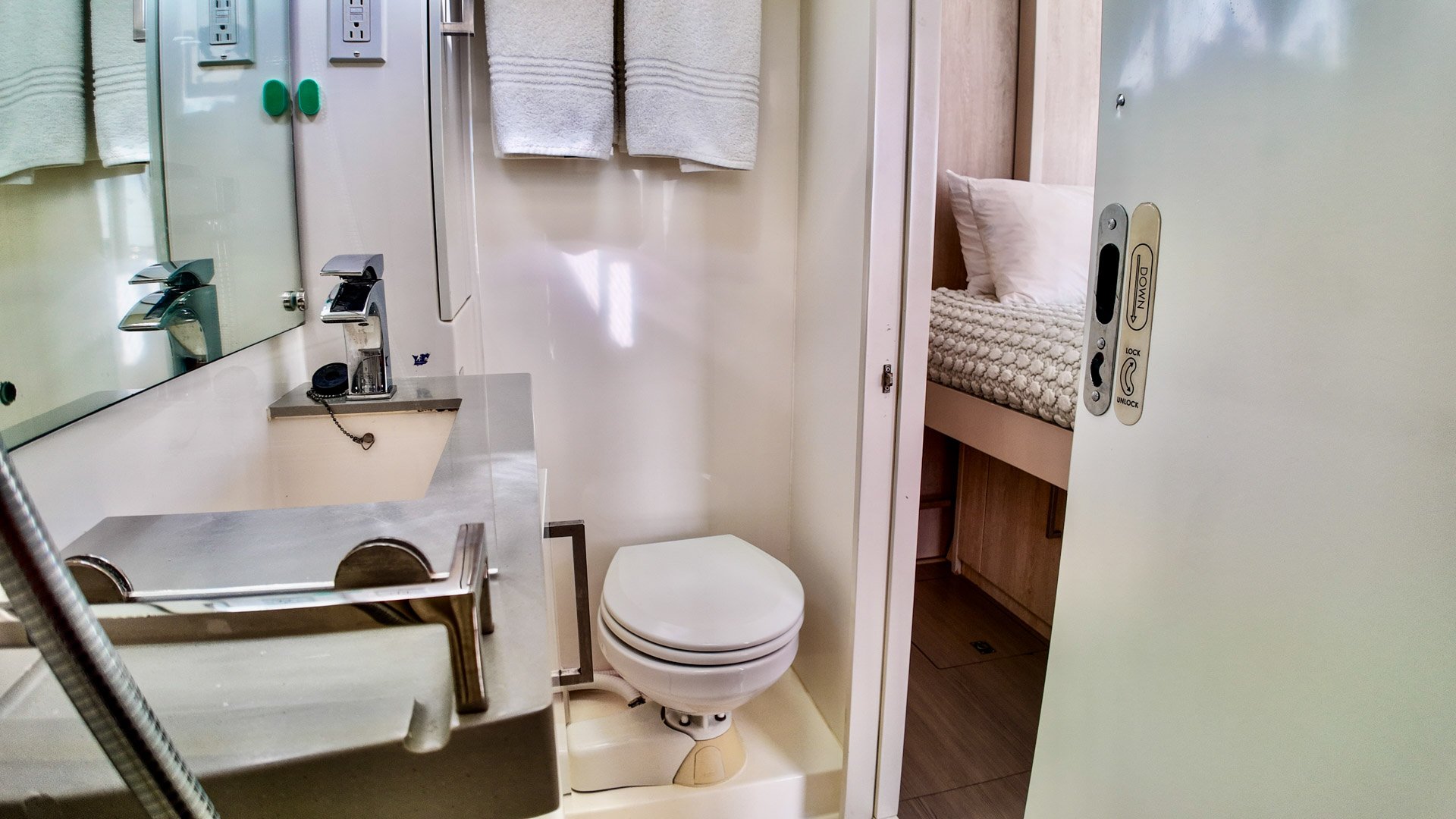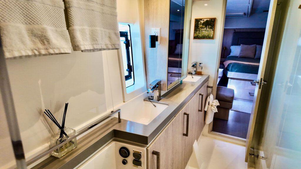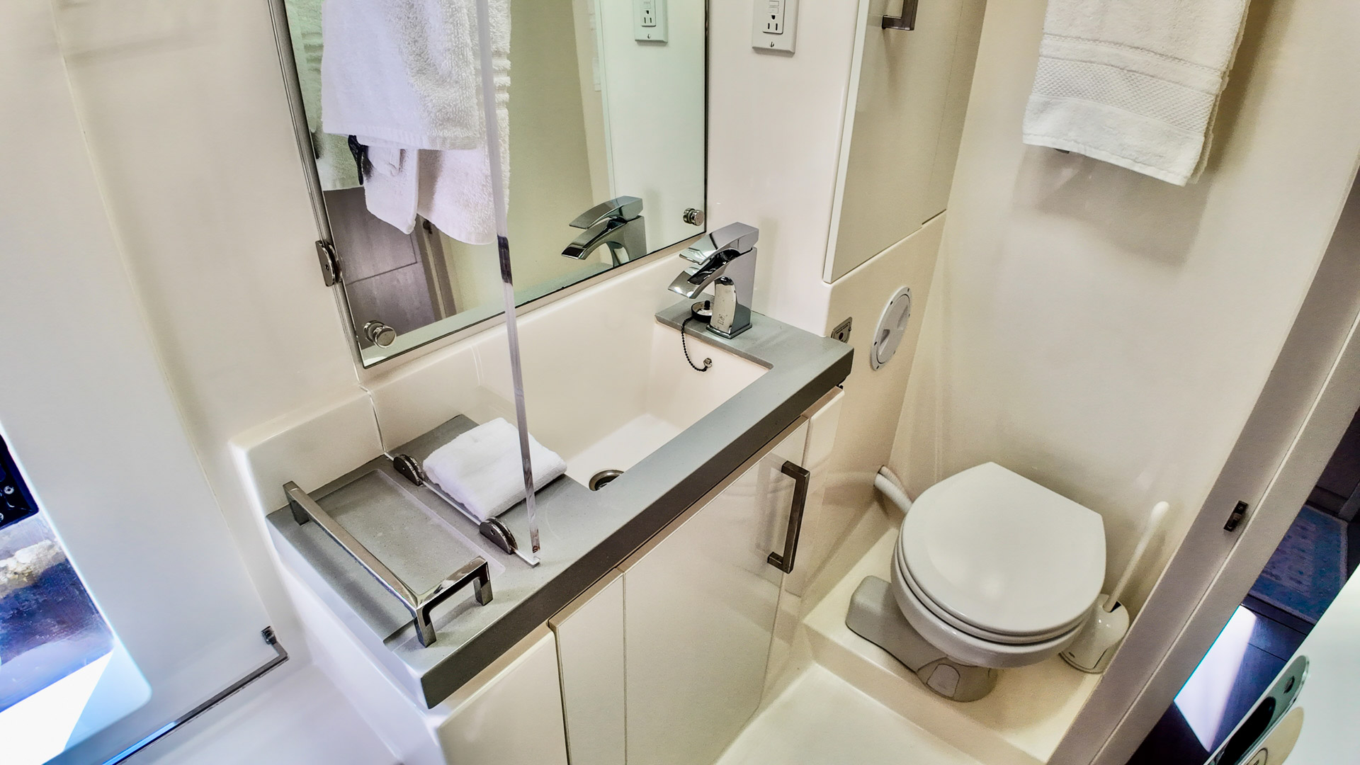 - 120/240V AC shore power on single 50 Amp cable (2 separate inlets)