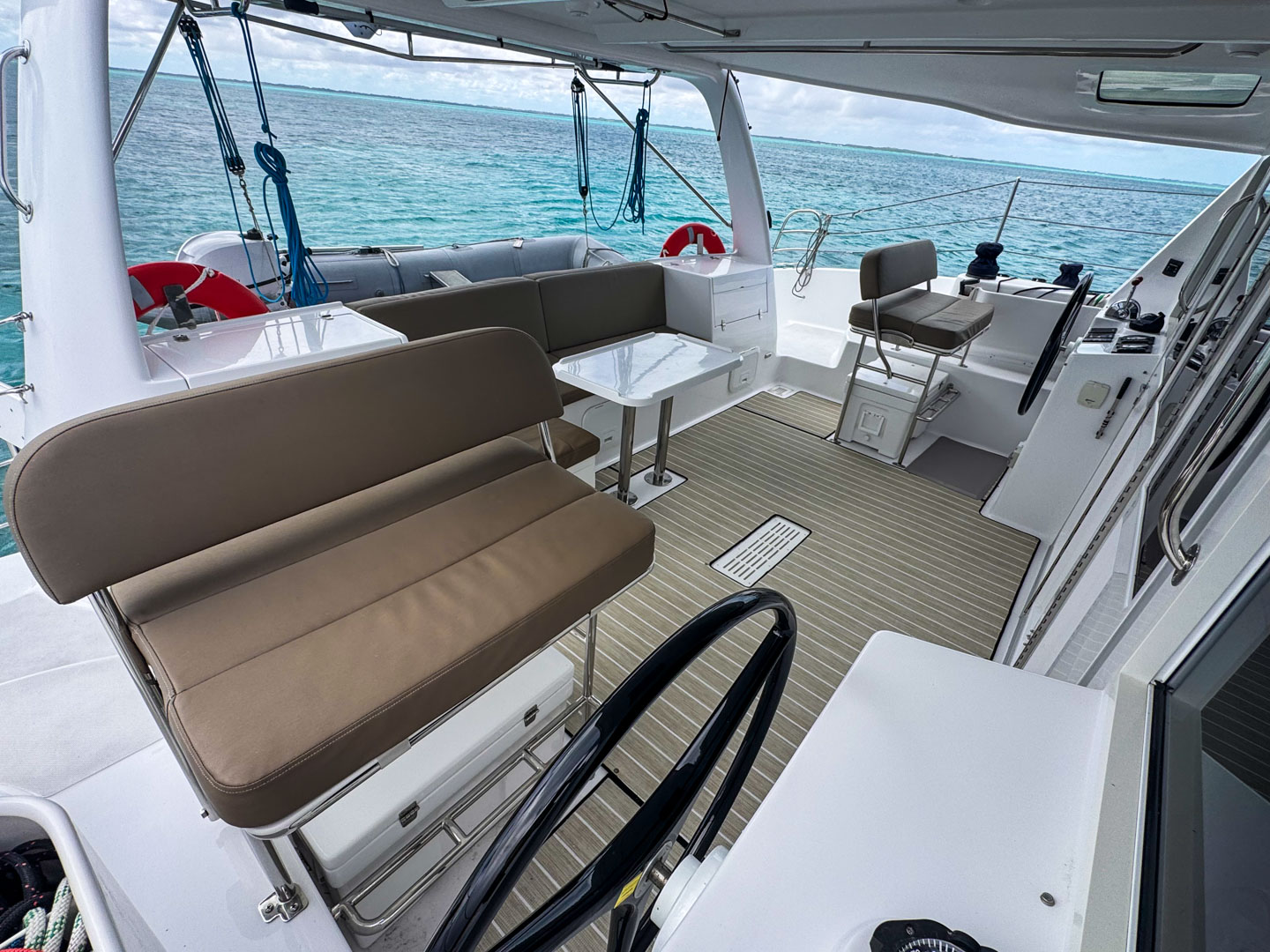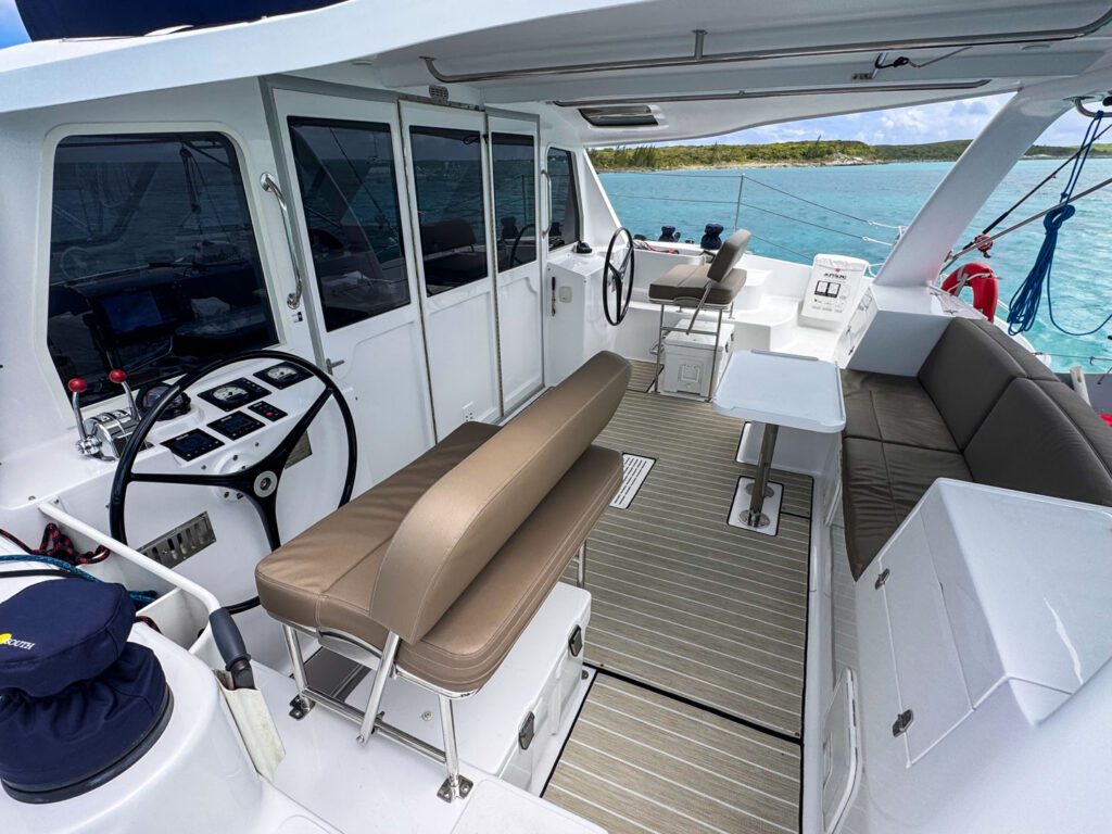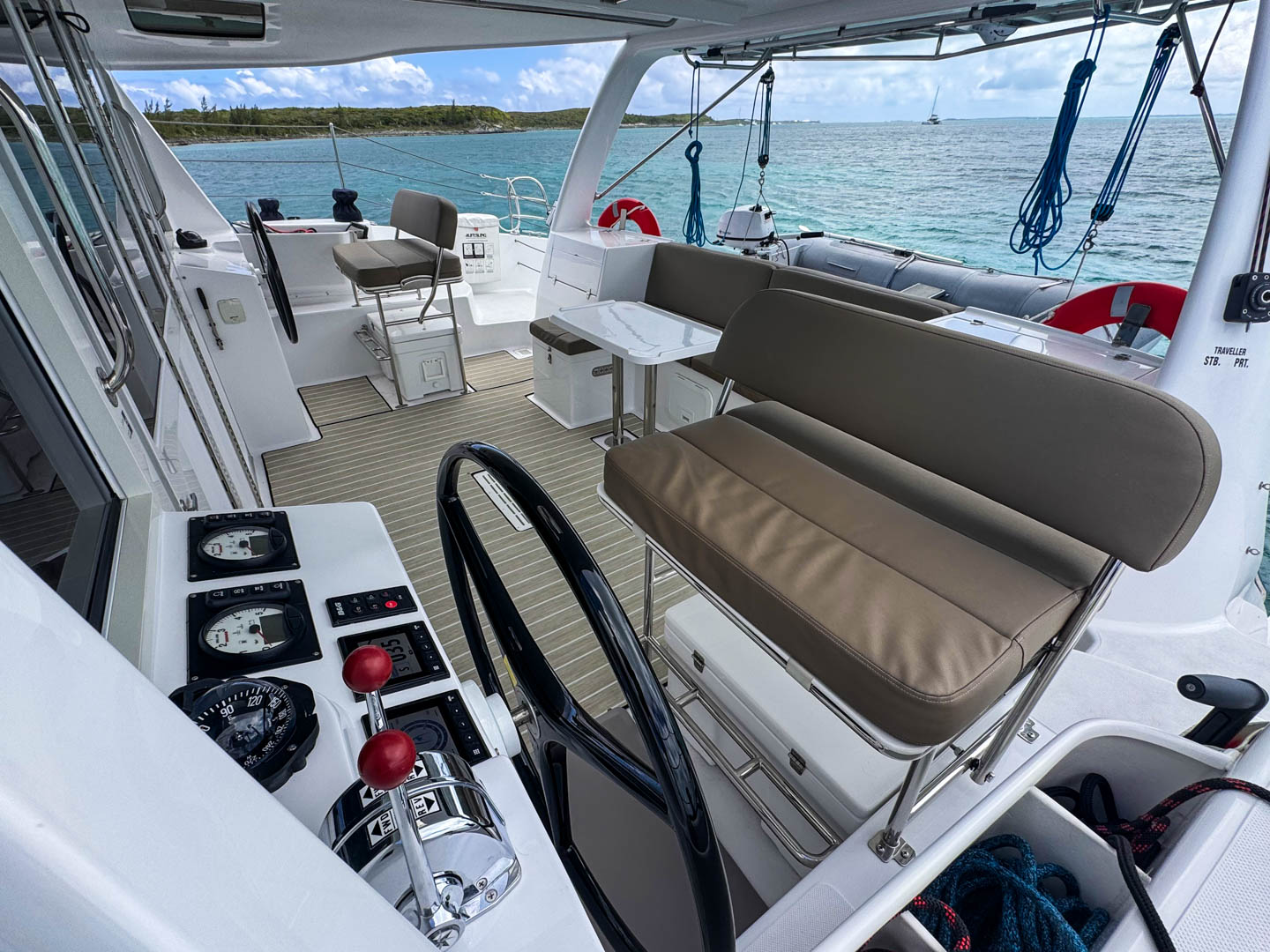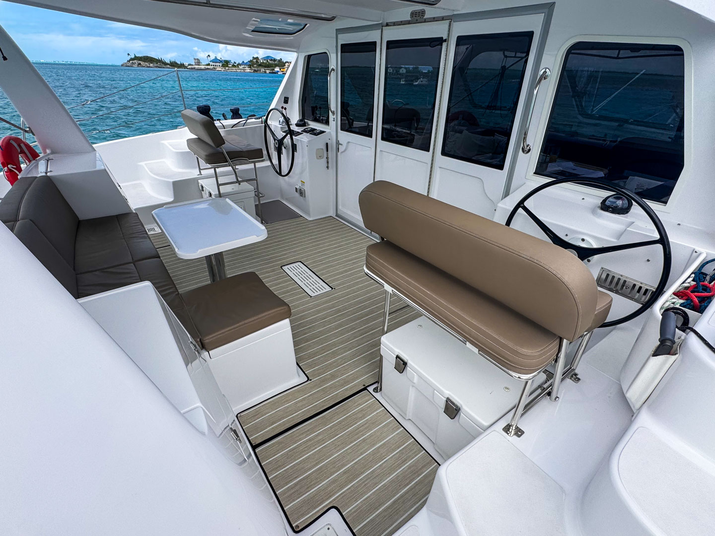Helm Stations: Twin helms are located in the protected cockpit, offering 360-degree visibility, with all lines leading to the helm for safe, single-handed, or short-handed sailing.