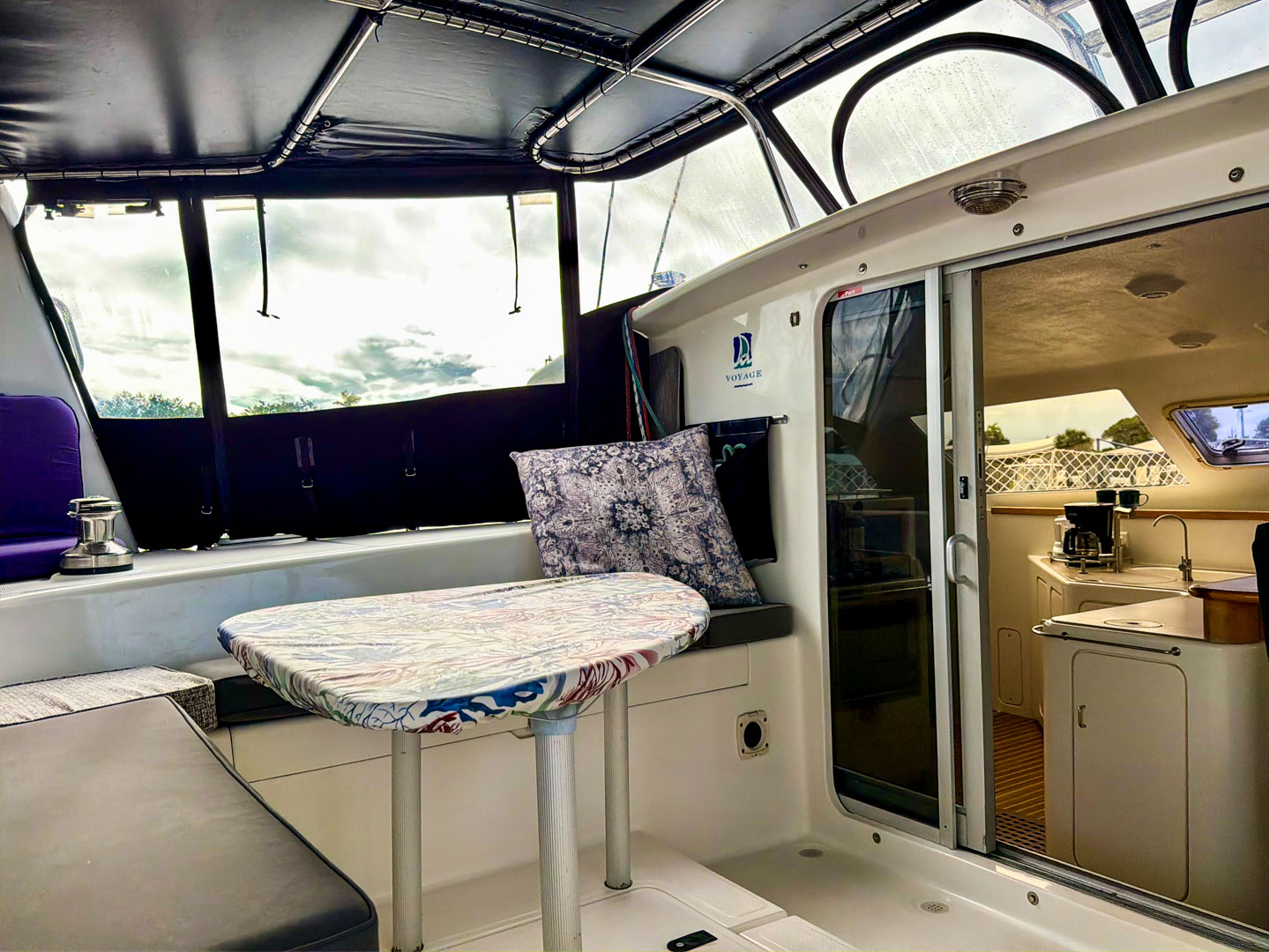 LEAP OF FAITH‘s desirable layout has been comprehensively upgraded and thoughtfully restored by current owners with a focus on reliability, comfort, and true cruising readiness. From brand new engines and saildrives, to exterior hull restoration and a new cockpit enclosure to name a few, recent investments exceed $175,000. LEAP OF FAITH is now a solid and dependable catamaran that pairs the proven Voyage 440 platform sailors remember and trust with modernized systems and a refreshed appearance rarely found in a vessel of this age.