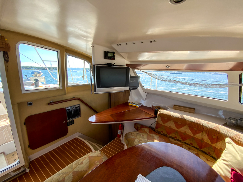 This Fountaine Pajot Venezia has been refit and upgraded to a very high standard. The exterior of the boat is elegant, with new hard bimini, gorgeous synthetic decking, new sails, new rigging. The boat has underwater lights and outside, the boat looks great. The engines were rebuilt from the ground up with less than 200 hours on them.