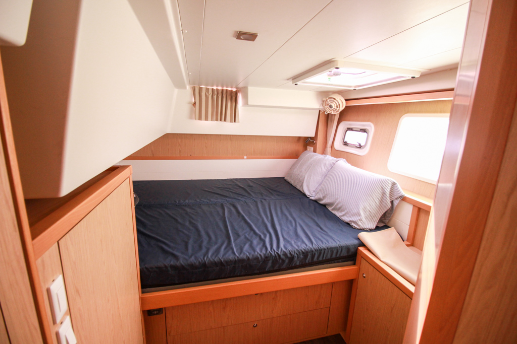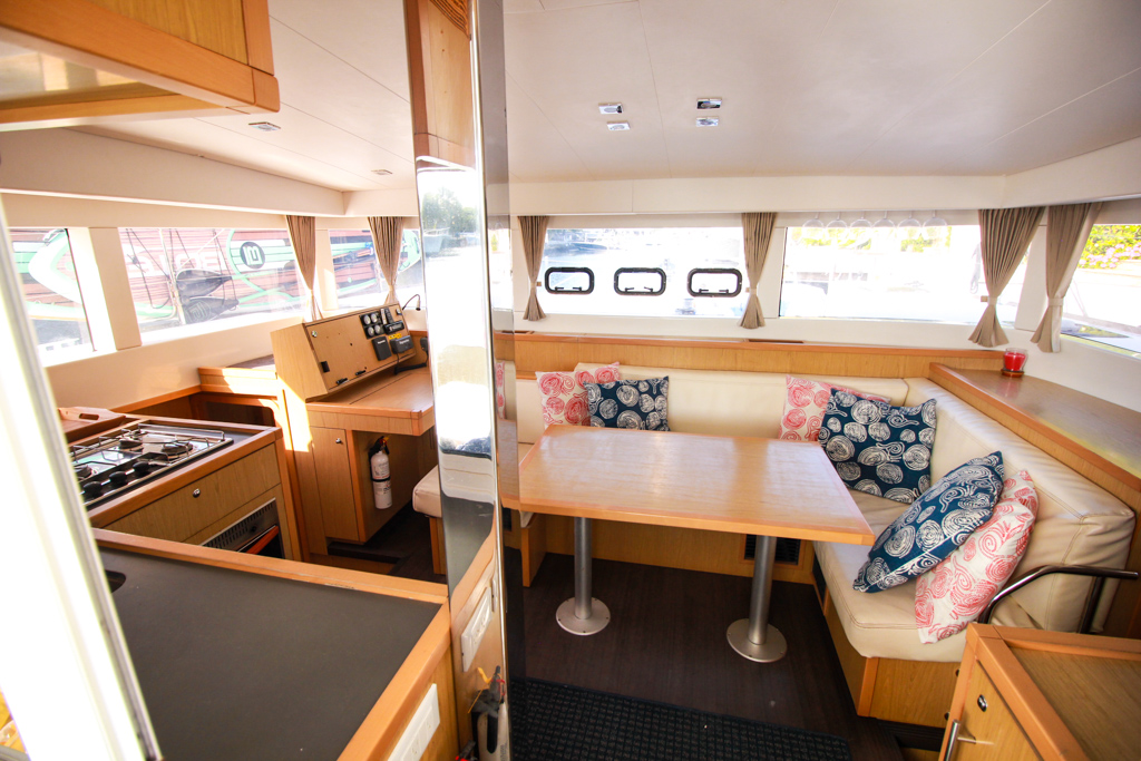 The Lagoon 39 filiation with the new Lagoon generation is apparent on first sight: vertical, beveled bows, aft-centered mast for sailing performance, and ease of handling… a strong character indeed!