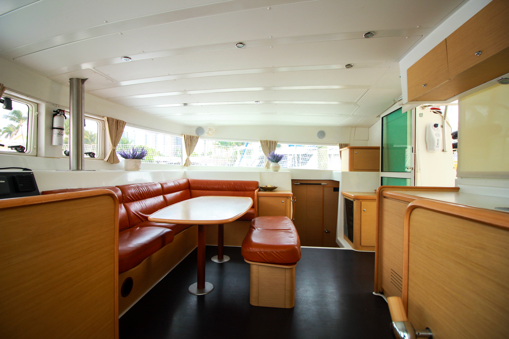 BEAR is an owners version Lagoon 420 with light wood interior. A new washer dryer and new full cockpit enclosure with new cockpit cushions and bow seat cushions. Soft leather seating in the salon makes it a very cozy home on the water. Powered by Yanmar 3JH4E twin engines.