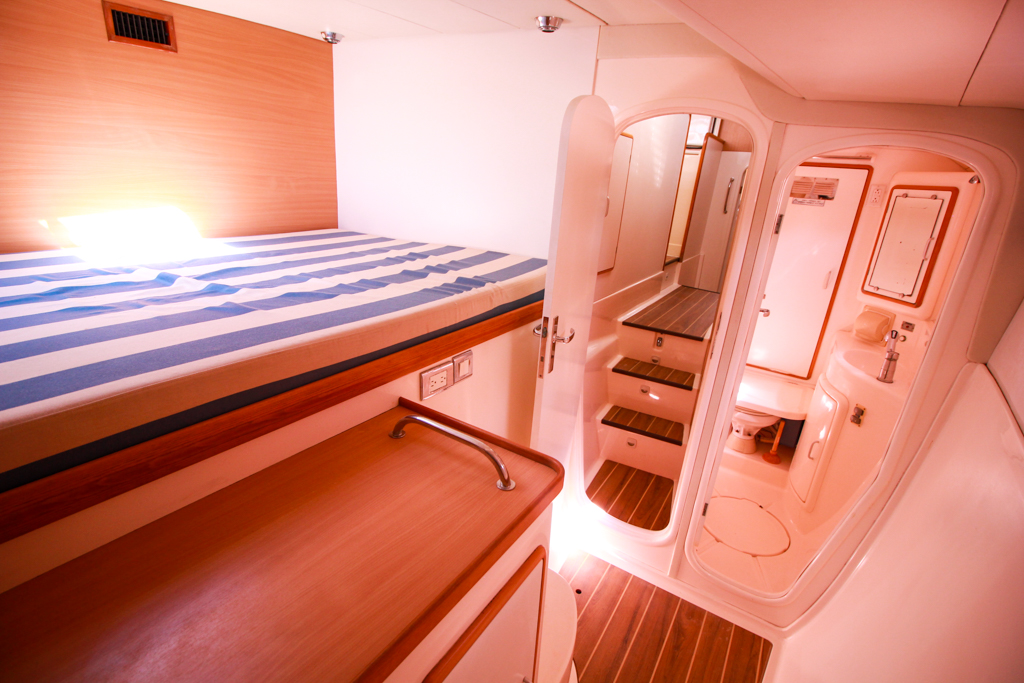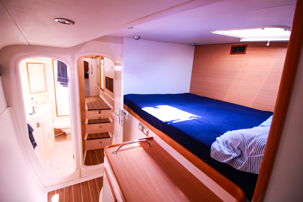 AREA 51 features 4 cabins and 4 heads, which sleeps 8 guests in cabins and a further 2 guests in the saloon.
