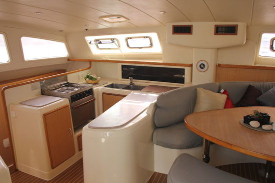 The Leopard 47 is the best combination of space, performance, quality, and value. Built in Cape Town, South Africa and outfitted with US equipment, including complete electronics, generator, and air conditioning. The Leopard 47 features a galley up, private and spacious heads, an aft platform with direct easy access to the cockpit, and great performance under power and sail.