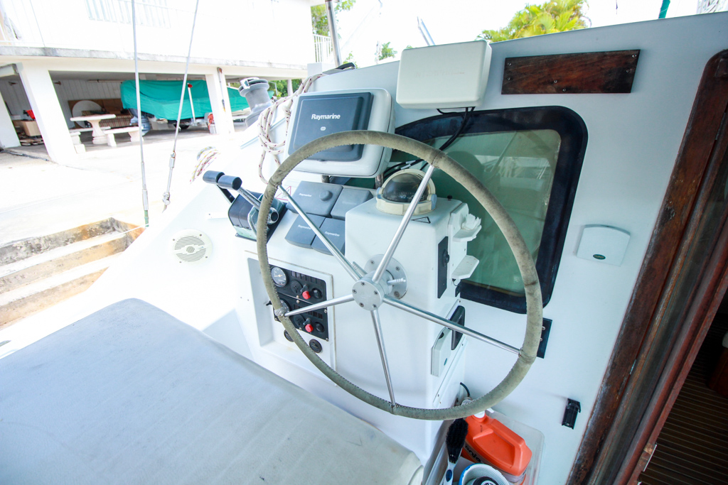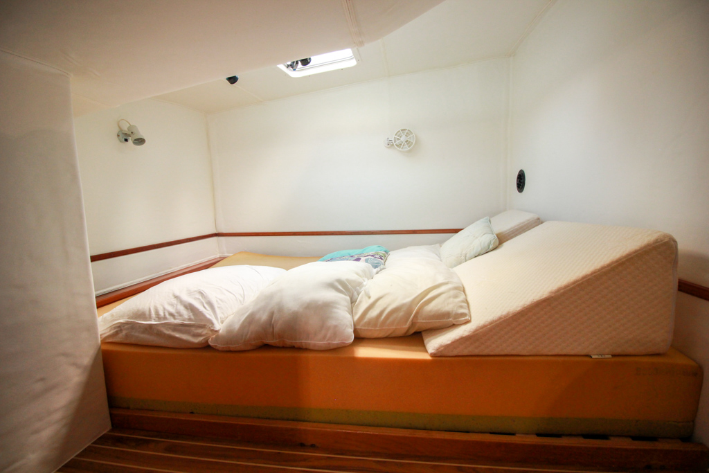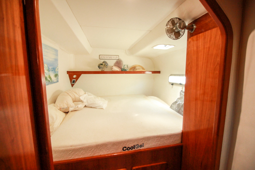 Galley is up, yet out of the way. Port side is comprised of two double berth cabins with private heads, showers and closets Starboard Aft cabin area is open for customization or storage/workshop (currently has Dometic Freezer located here) or even crew quarters.