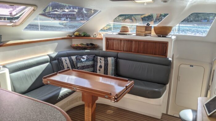 - Multiple large storage lockers under bench seating, and two large lockers under cockpit floor that hold the life raft, spare oil, etc.